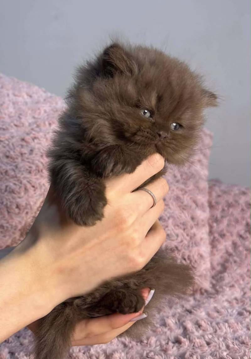 Introducing our delightful male British Longhair, a charming little gentleman with a luxurious chocolate coat and a sweet disposition. His fluffy fur and captivating eyes make him an irresistible companion, ready to fill your days with warmth and joy.
